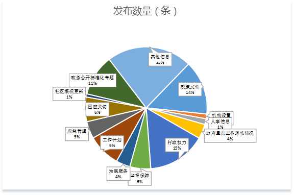 我办在信息公开工作中充分利用办事处及下属社区的宣传栏、政务公开网站、报刊栏、LED屏、橱窗、小喇叭、横幅标语等各种渠道进行信息公开,确保群众及时了解政府信息动态,为群众办事提供便利。经对政务公开网信息进行梳理和编目,主动公开政府信息,主要包括办事处概况及机构职责、计划规划类、政府规范性文件类、业务公开类。自2020年1月份以来我办共计发布各类信息722条(其中政策文件104条,机构设置9条,人事信息11条,政府重点工作落实情况28条,行政权力112条,监督保障40条,为民服务27条,工作计划63条,应急管理33条,回应关切47条,社区概况更新6条,政务公开标准化专题79条,其他信息163条),全年月均60条。