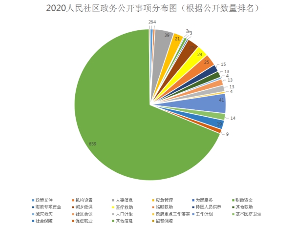 推进政府信息公开是建设服务型政府的重要举措,2020年,人民社区继续深入贯彻实施《中华人民共和国政府信息公开条例》,始终把信息公开工作作为联系群众、服务社会、接受群众监督的重要桥梁,不断加强制度建设。社区综合事务部对政务公开网的内容进行了梳理和编制,据统计,2020年人民社区公开各类信息共计961条,公开内容涵盖57个栏目,包括社区概况、机构设置、政策文件、工作计划、应急管理、安全生产、重点工程、财政专项资金、人口计生、促进就业、教育信息、监督保障等工作信息,政府信息公开工作的全面性、时效性得到了有效提升。