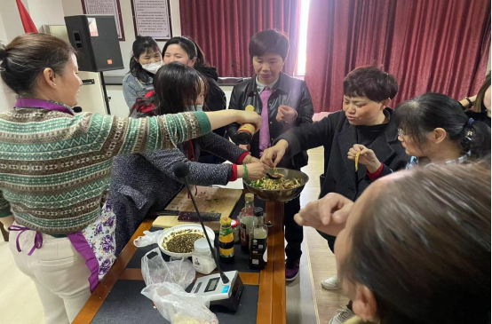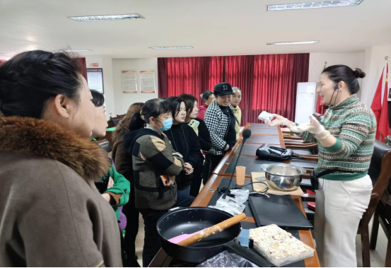 课堂上,老师向大家介绍食品营养知识、甜品业市场现状和食品卫生与安全等理论知识,详细讲解各类甜品和凉拌菜的制作方法,从“食物的营养价值”延伸到“科学的食用方法”,现场实操了“雪花酥”、“什锦菜”制作流程,通过配料、压制、烫菜、调味、摆盘等流程让学员亲手操作实践,并手把手进行指导,通过理论学习与实际操作相结合,给学员们上了一期高质量的专业课。课程有声有色,学员们热情高涨,仔细听讲、记录,积极和老师开展互动交流。参与活动的妇女纷纷表示,这次培训不仅增强了他们对家政服务的认同,也为他们提供了更多更好的就业选择。一位参加培训的妇女表示:“这次培训让我认识到,家政服务是一份既有尊严又有前景的职业,我一定会认真学习,提升自己的技能,争取找到一份好工作。”
