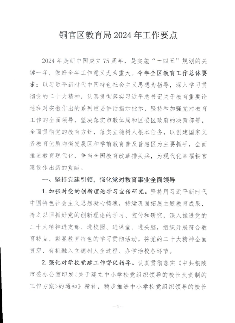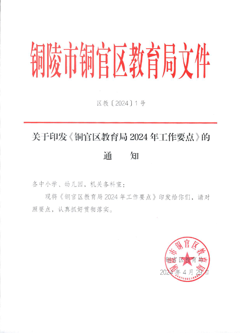 铜官区教育局2024年工作要点-铜官区人民政府