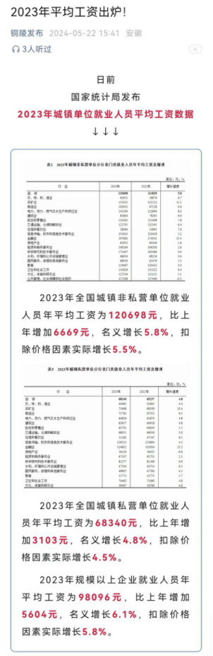2023年城镇单位就业人员平均工资-铜官区人民政府
