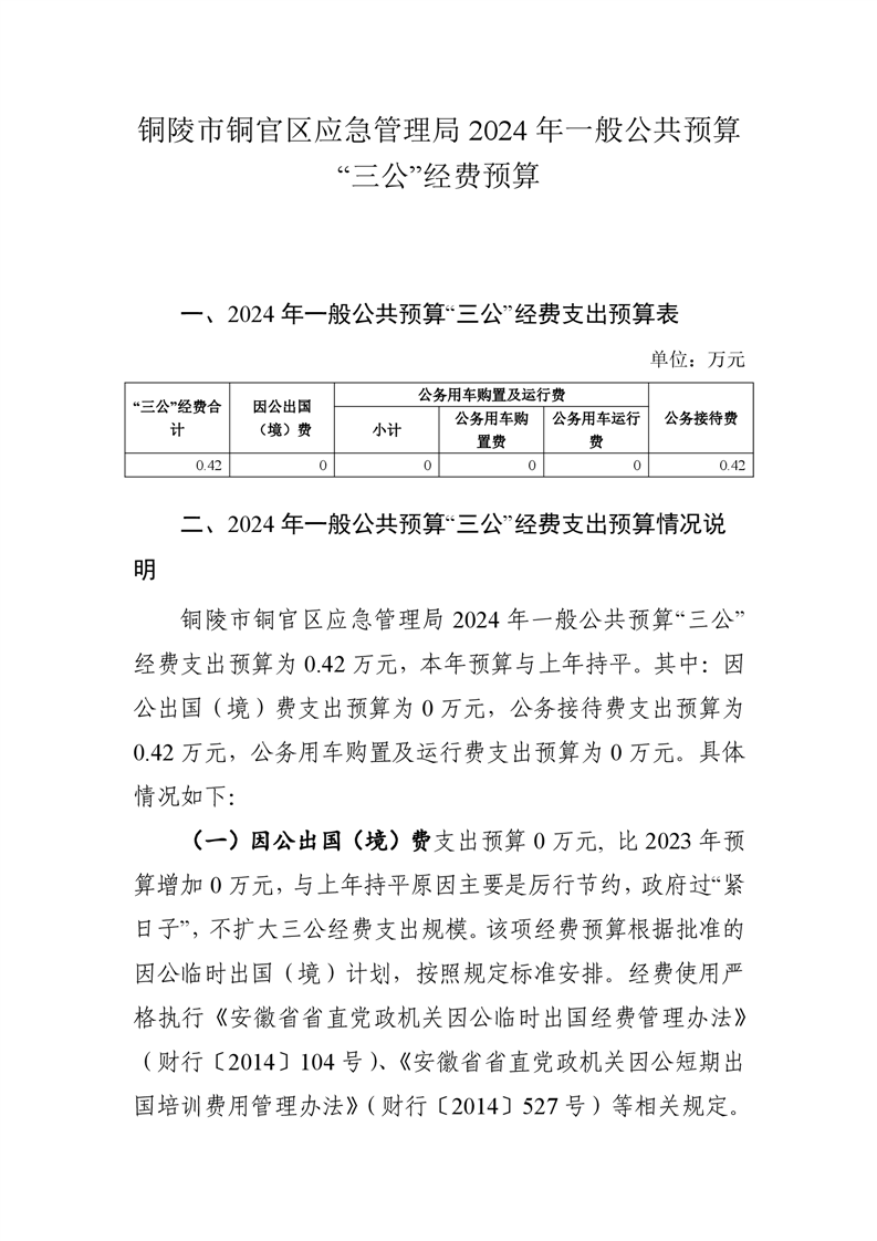 铜陵市铜官区应急管理局2024年度三公经费预算信息公开-铜官区人民政府