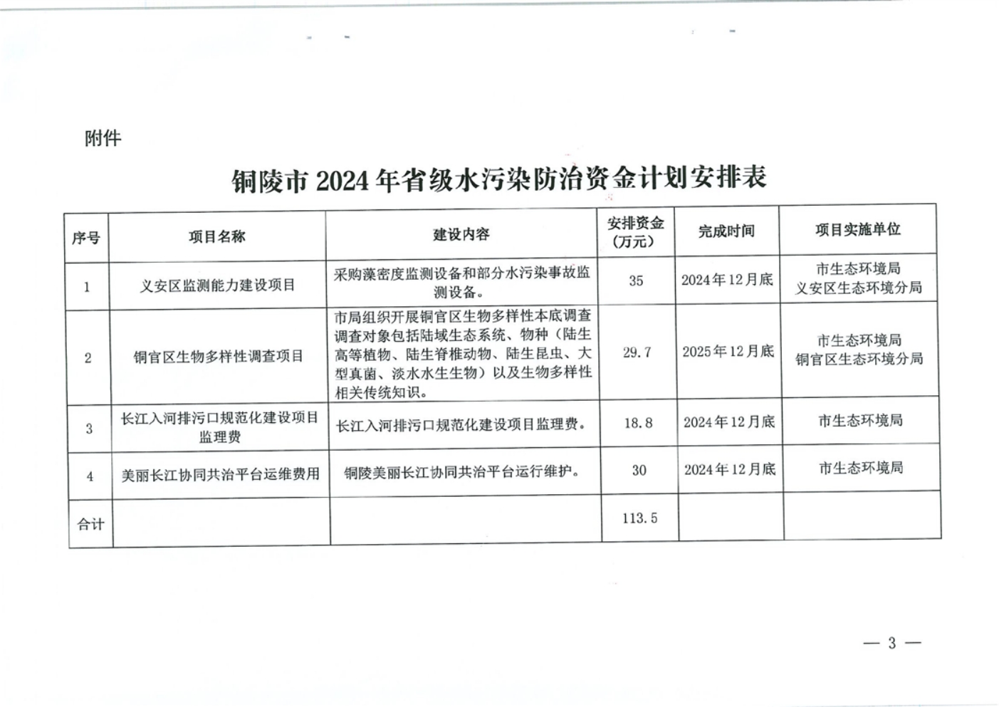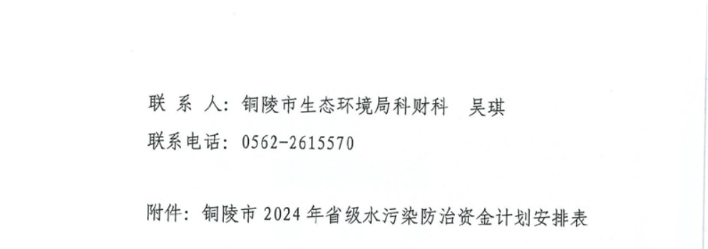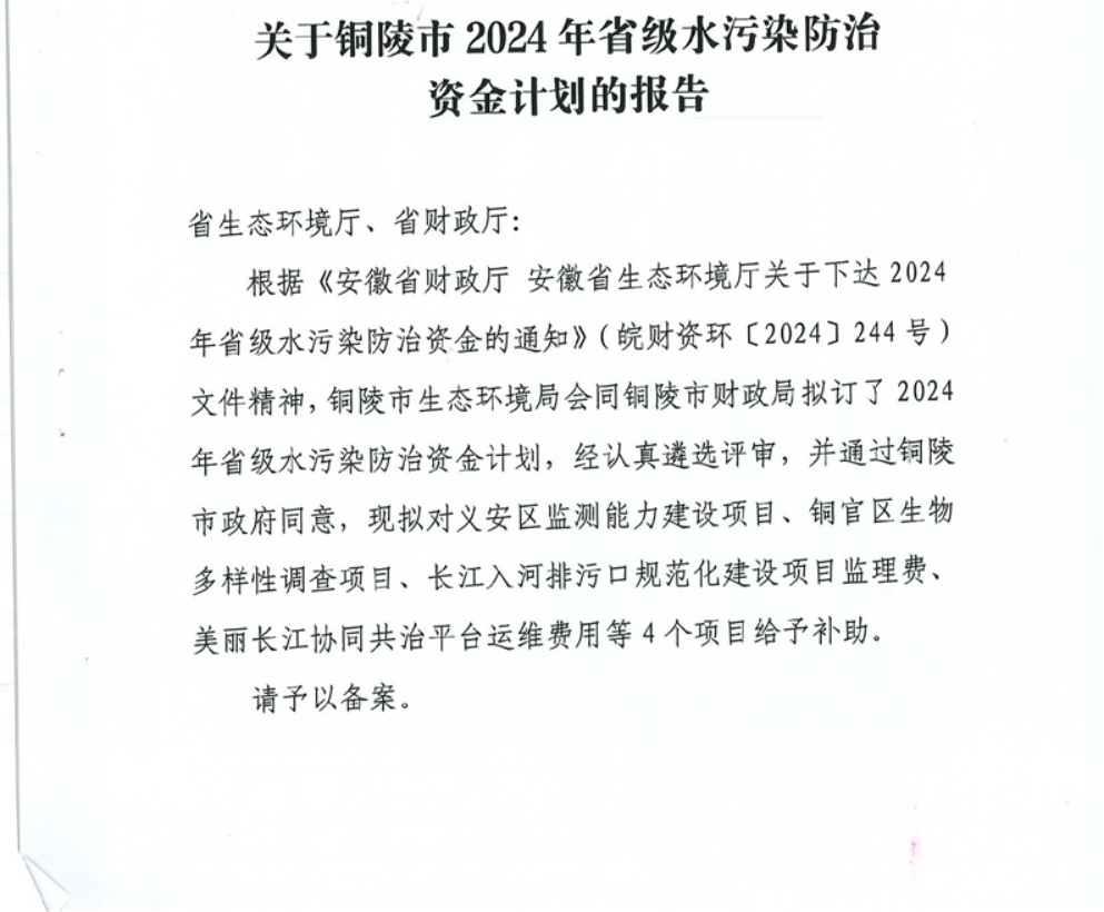 关于铜陵市2024年省级水污染防治资金计划的报告-铜官区人民政府