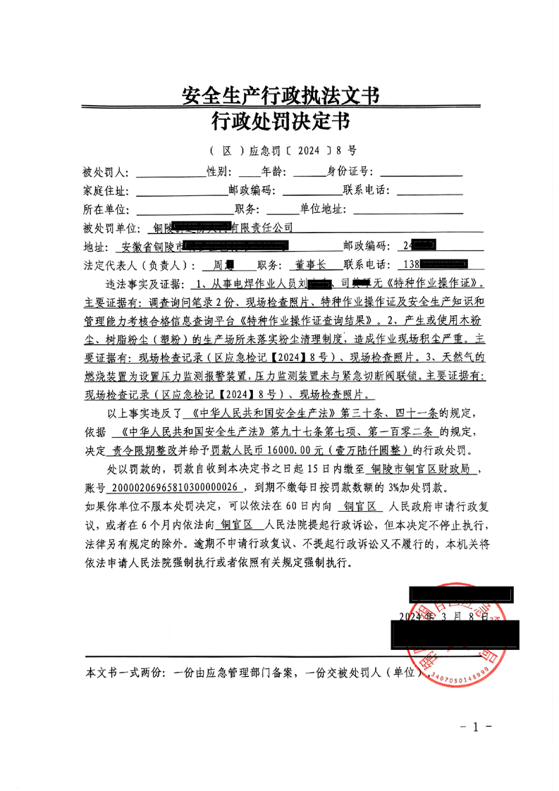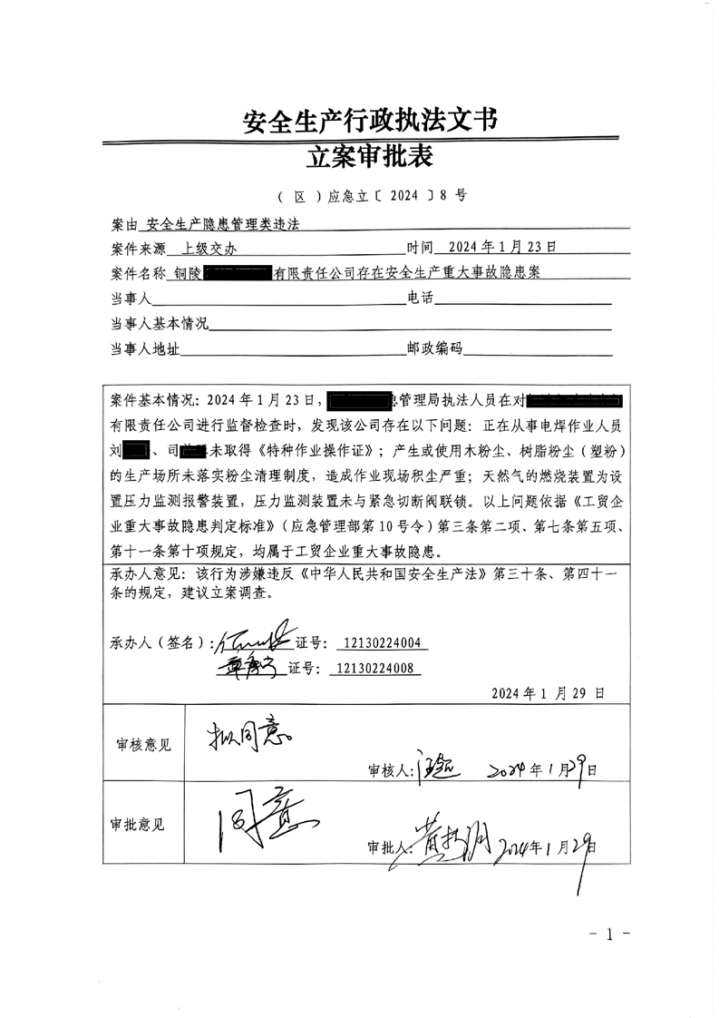 【重大事故隐患】2024年一季度铜官区重大安全隐患整治进展情况-铜官区人民政府