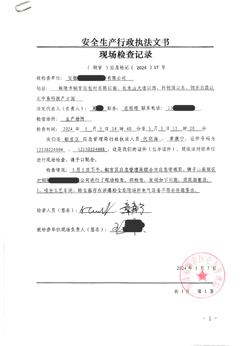 区应急管理局2024年监管信息(二)-铜官区人民政府