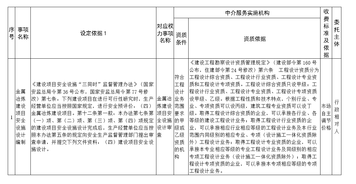 公共服务和中介服务清单