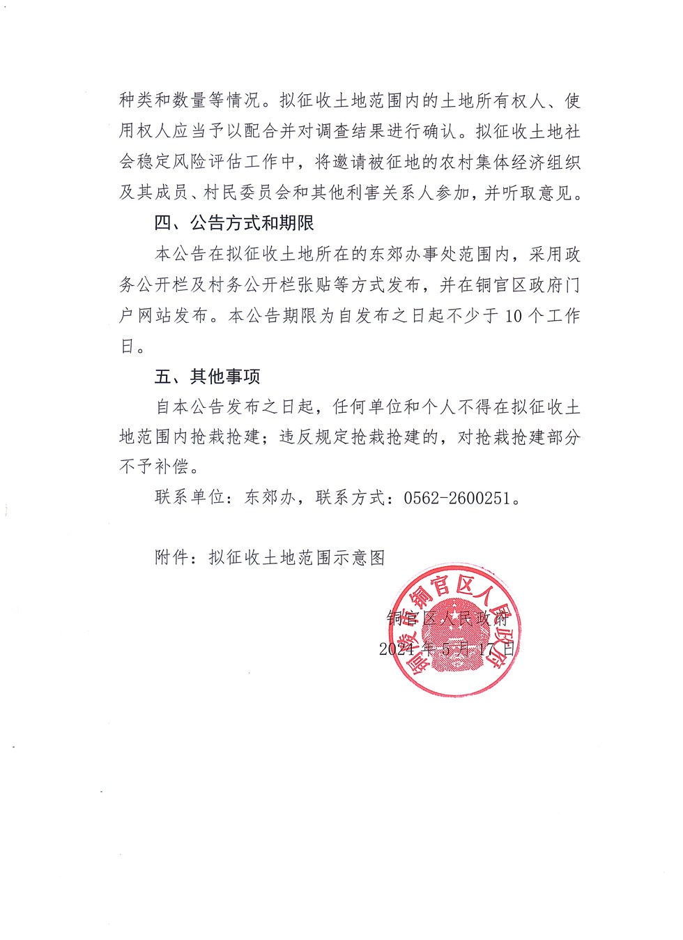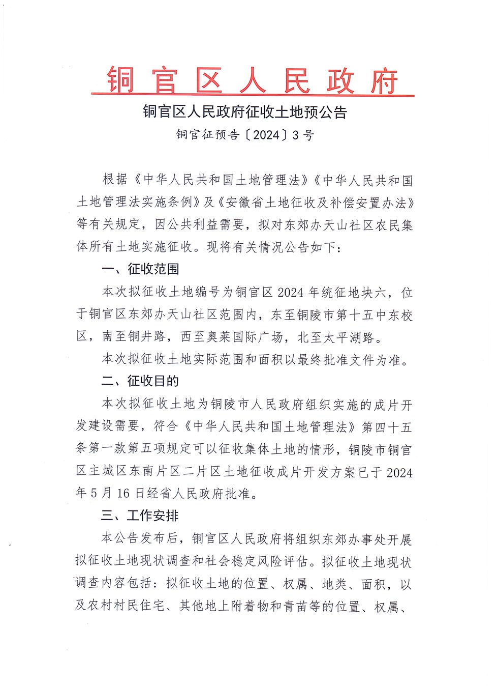铜官区人民政府征收土地预公告