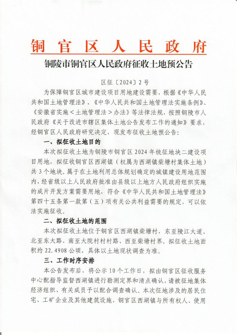 铜官区人民政府征收土地预公告-铜官区人民政府