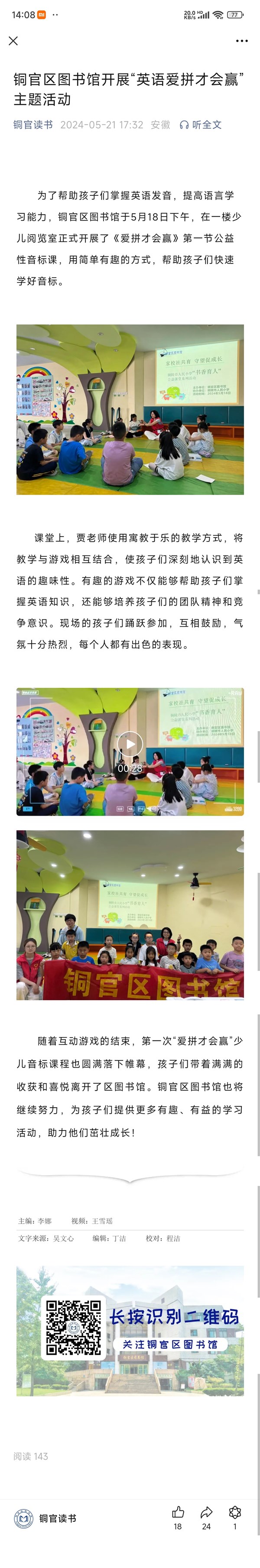铜官区图书馆开展“英语爱拼才会赢”主题活动