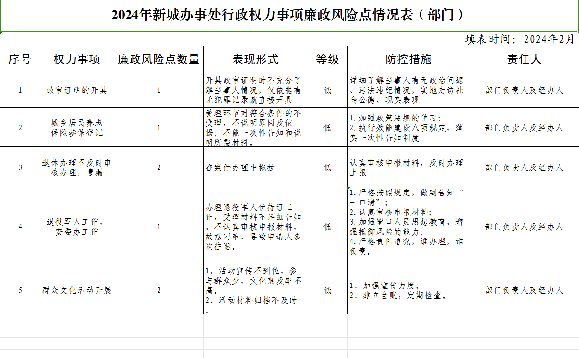 2024年新城办事处行政权力事项廉政风险点情况表-铜官区人民政府