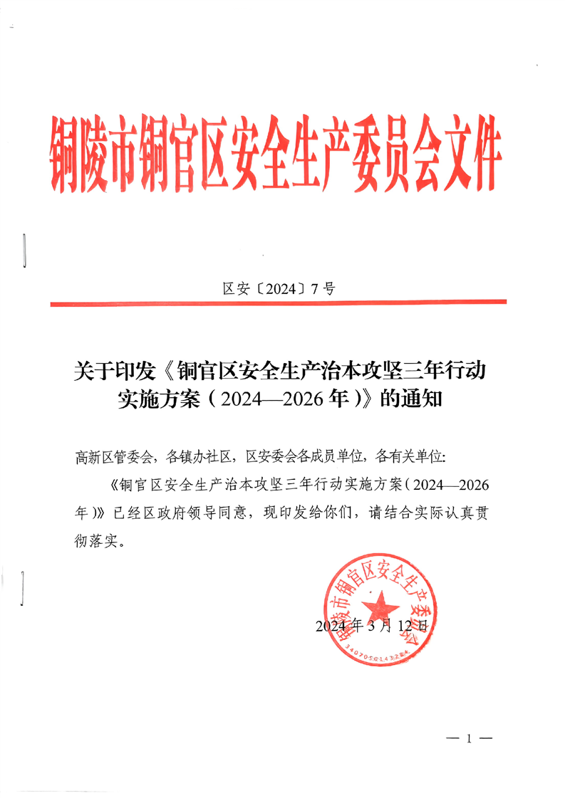 【重要政策】关于印发《铜官区安全生产治本攻坚三年行动实施方案(2024-2026)》-铜官区人民政府