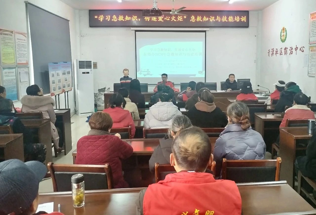 为广泛普及应急救护知识,增强居民的公共安全意识,提高广大居民的互救及自救能力,1月9日上午,东郊办邀请市阳光应急救援公益协会走进开源社区开展“学习急救知识 传递爱心火炬”应急救护知识与技能培训活动,辖区40余位居民参加。