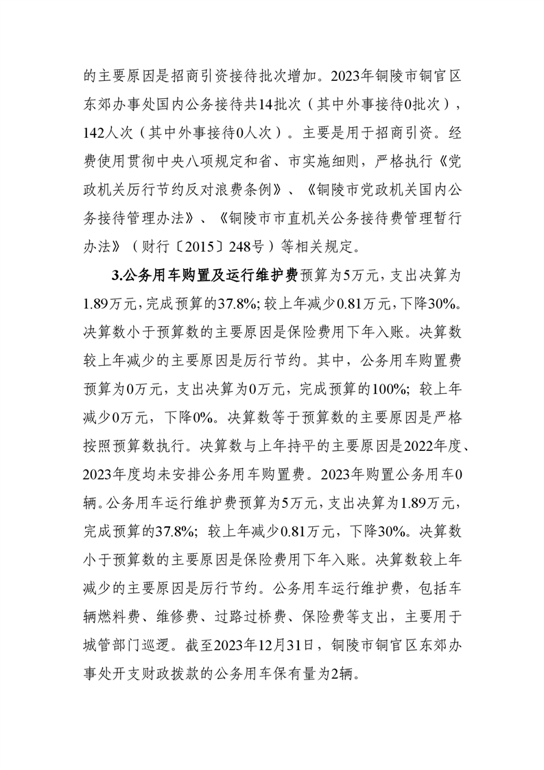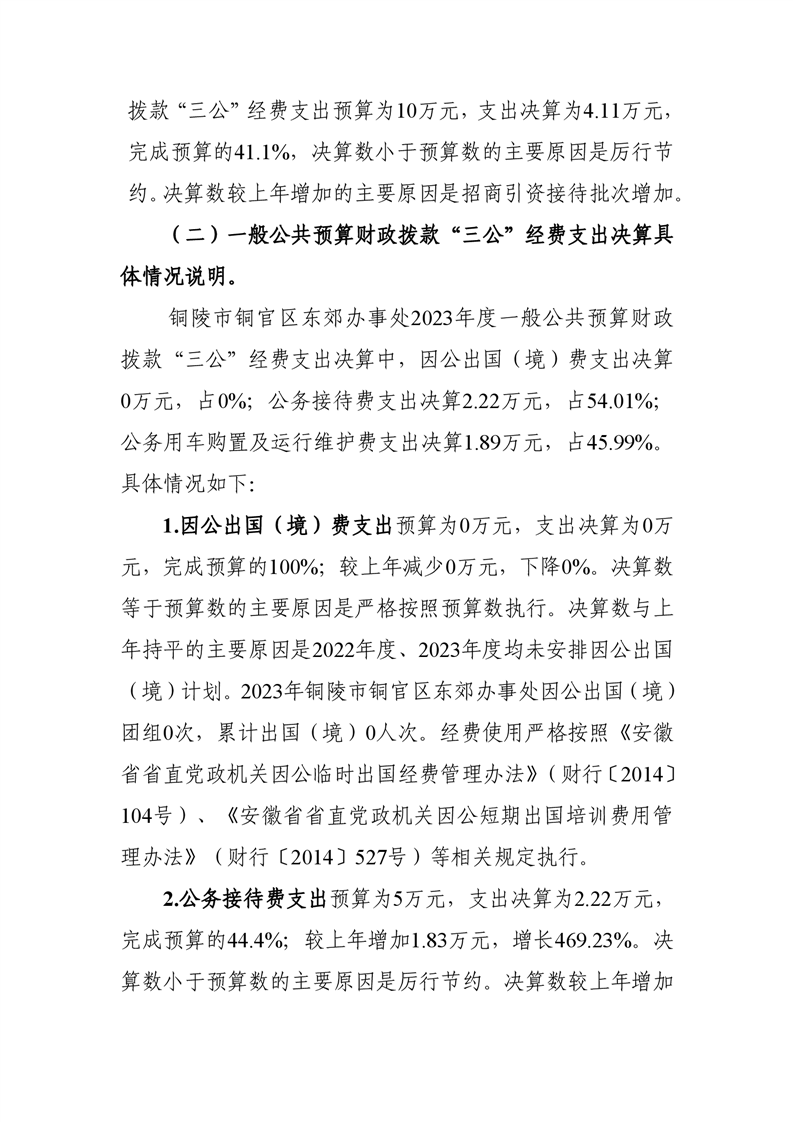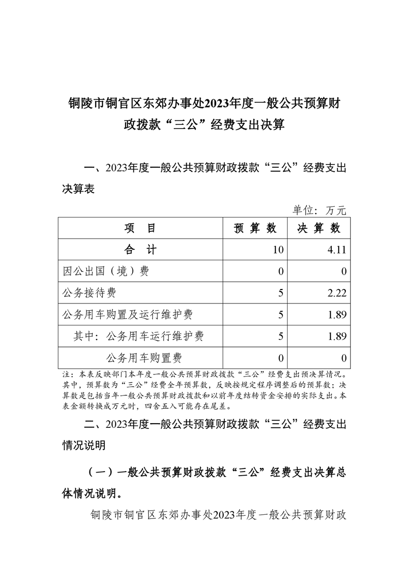 铜陵市铜官区东郊办事处-2023年三公经费决算-铜官区人民政府