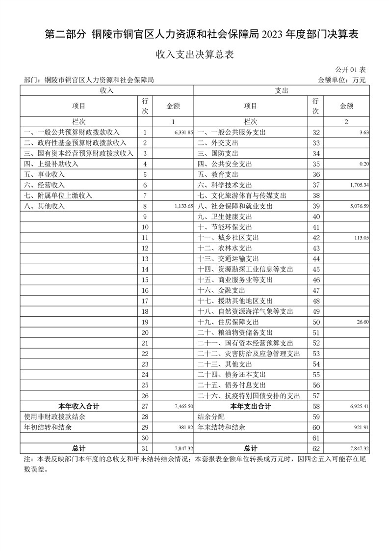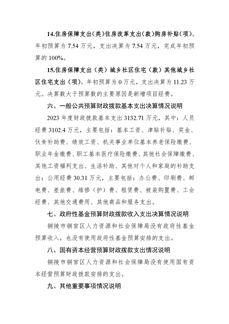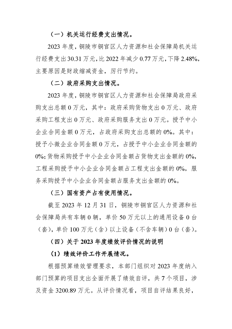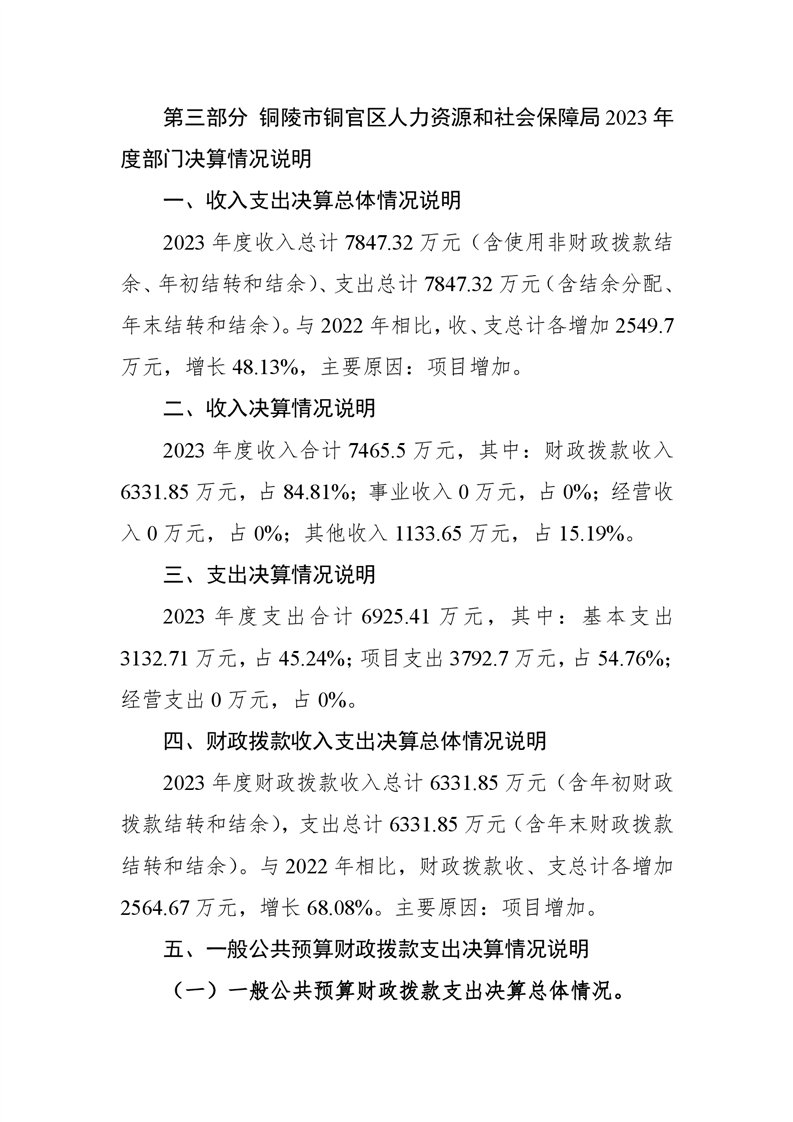 铜陵市铜官区人力资源和社会保障局2023年度决算信息公开-铜官区人民政府