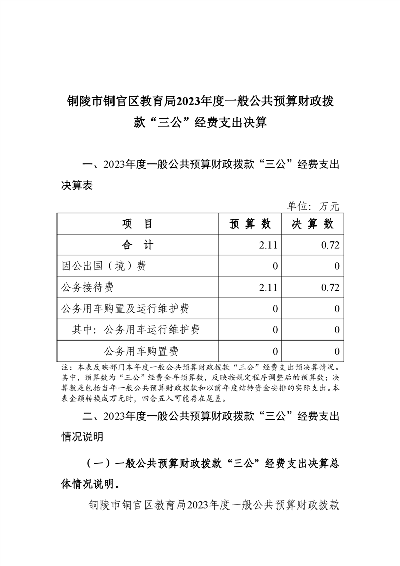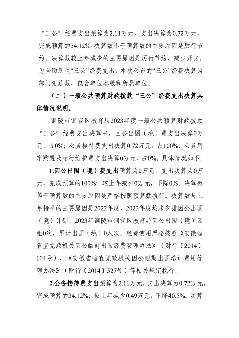 铜陵市铜官区教育局2023年三公经费决算-铜官区人民政府