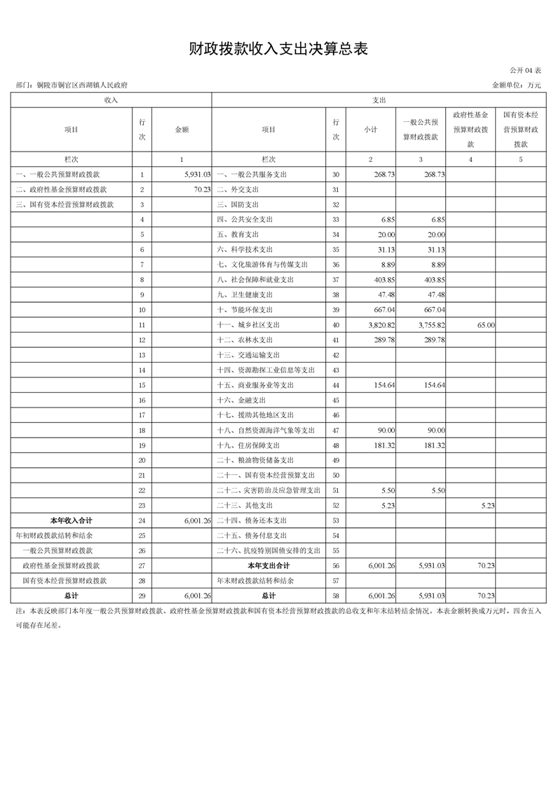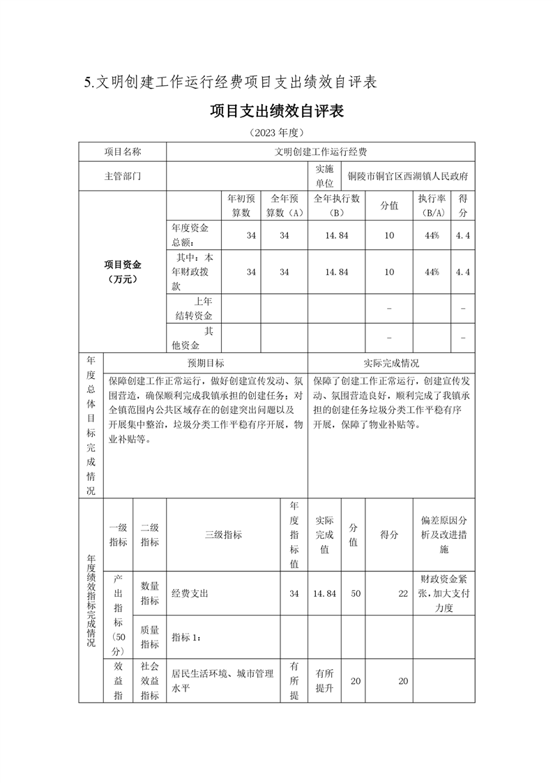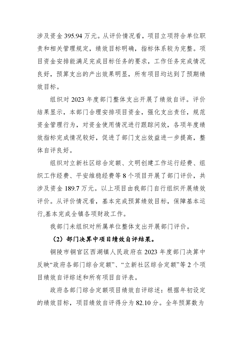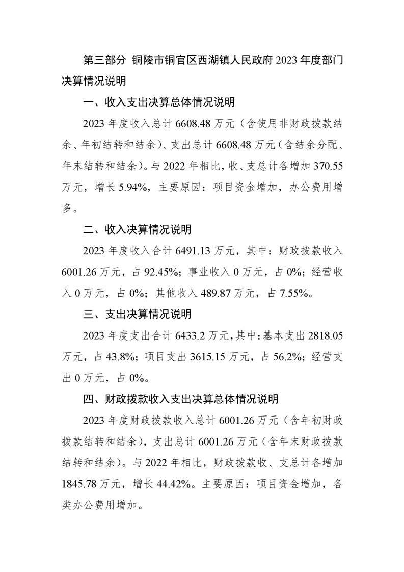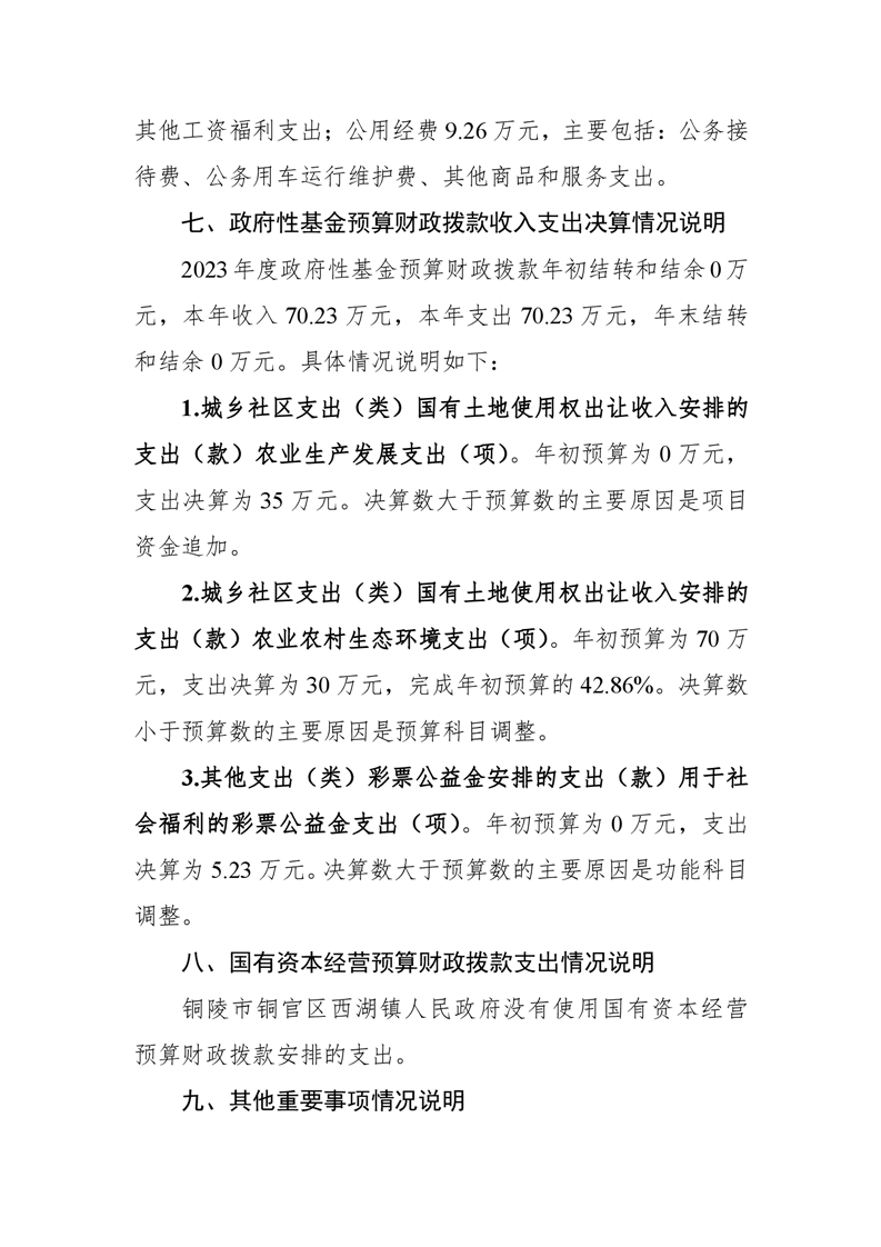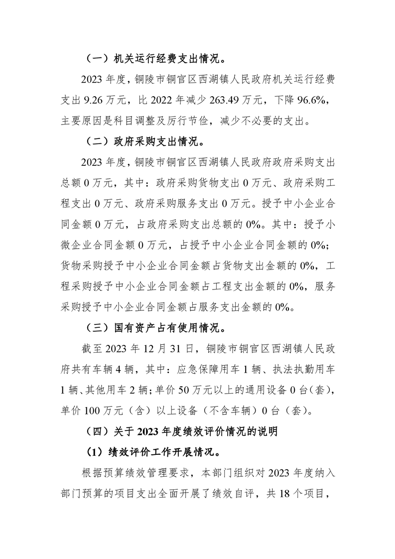 铜官区西湖镇人民政府2023年度部门决算-铜官区人民政府