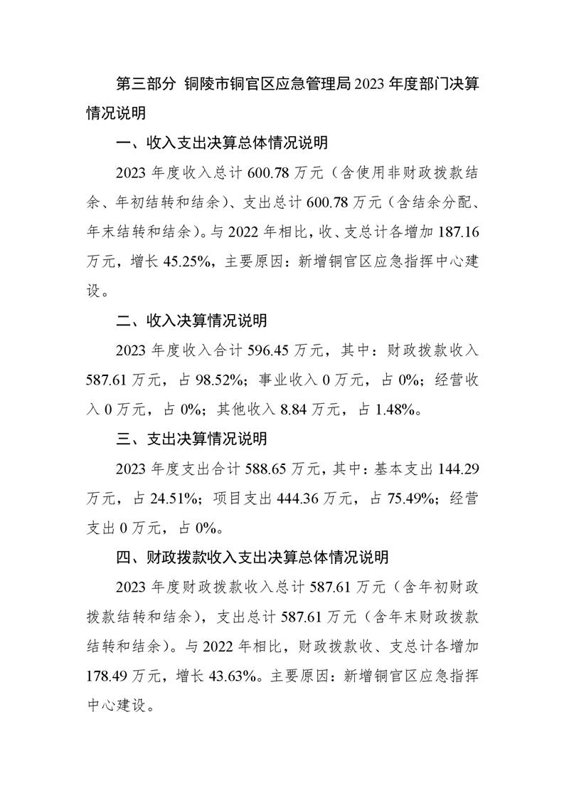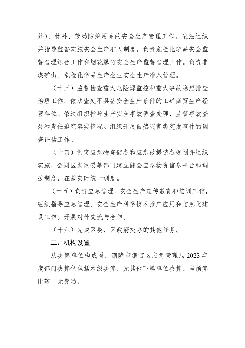 铜陵市铜官区应急管理局2023年度部门决算公开-铜官区人民政府
