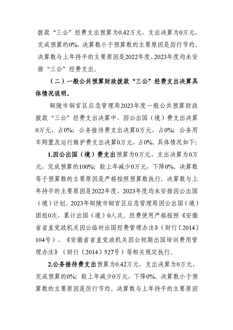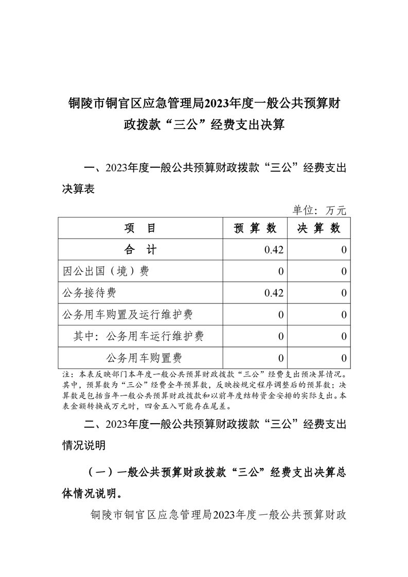铜陵市铜官区应急管理局2023年度一般公共预算财政拨款“三公”经费支出决算-铜官区人民政府