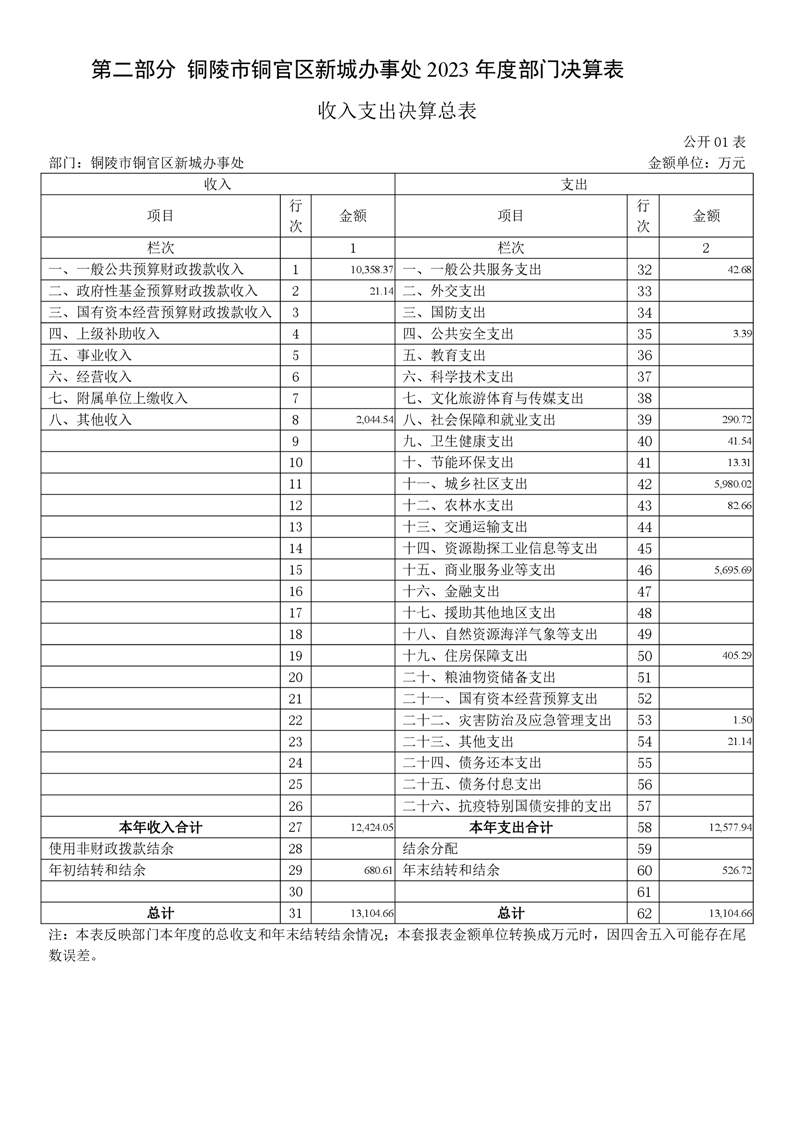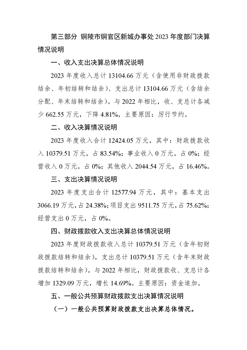 铜官区新城办事处2023年部门决算-铜官区人民政府