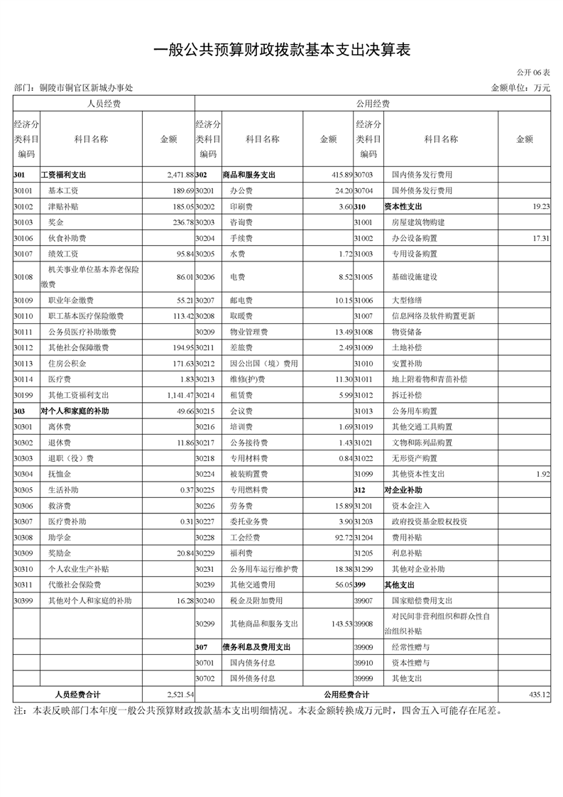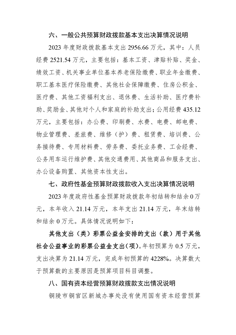 铜官区新城办事处2023年部门决算