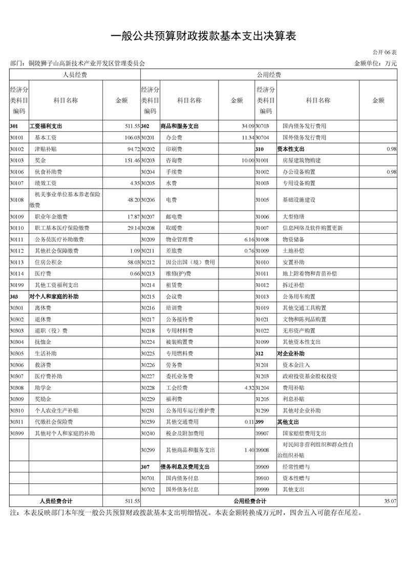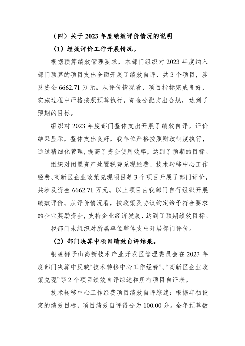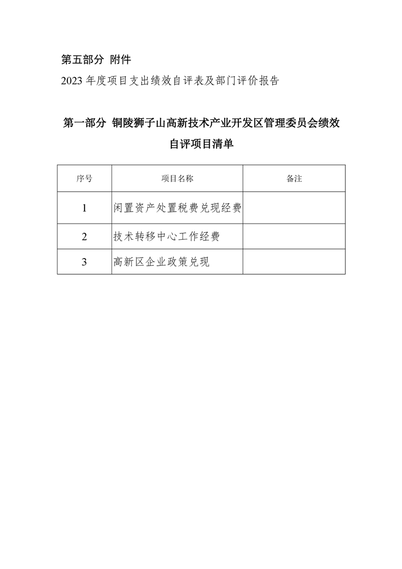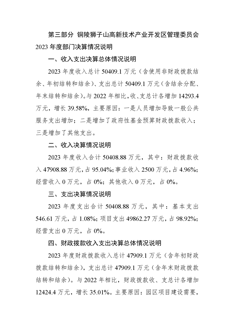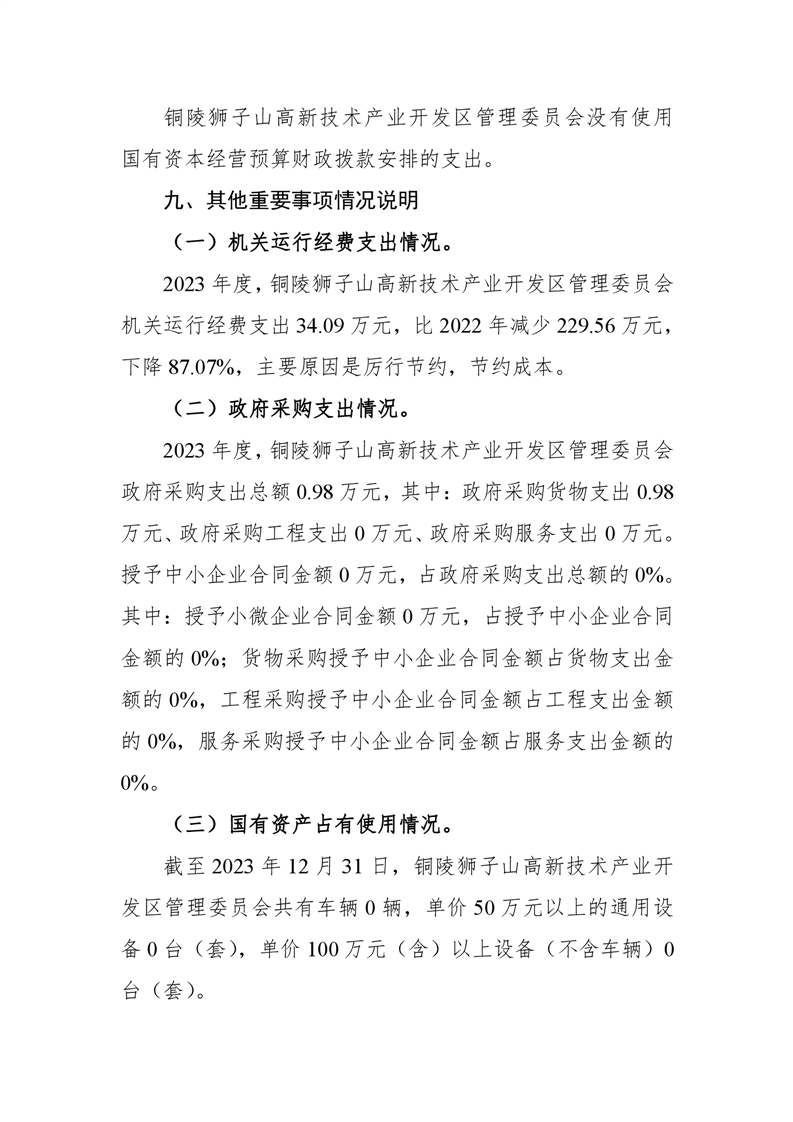 铜陵狮子山高新技术产业开发区管理委员会2023年度决算