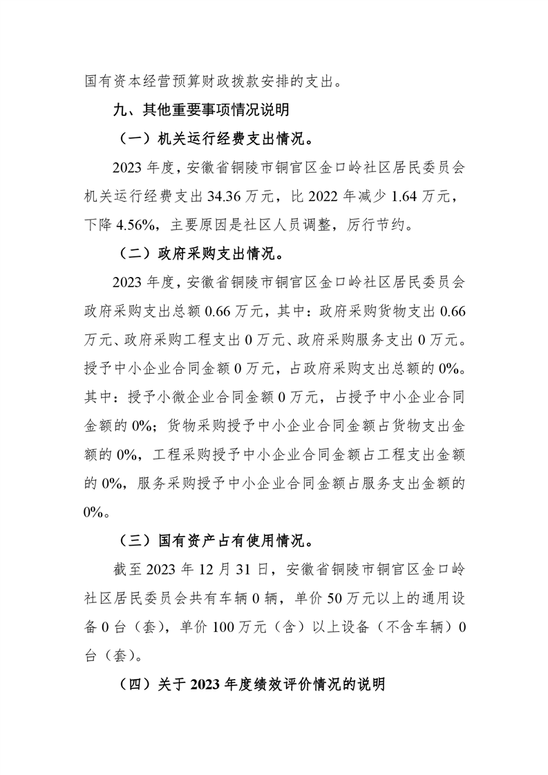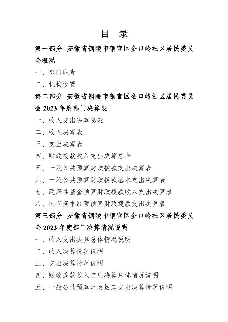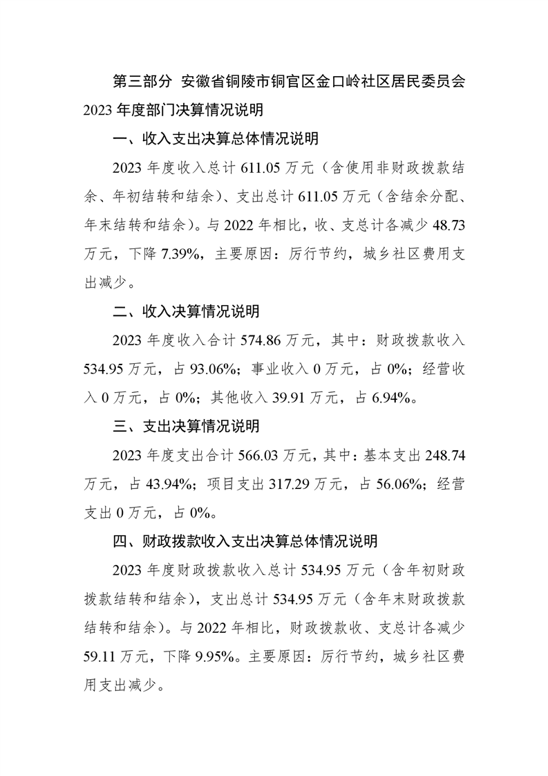 铜官区金口岭社区2023年度部门决算 |