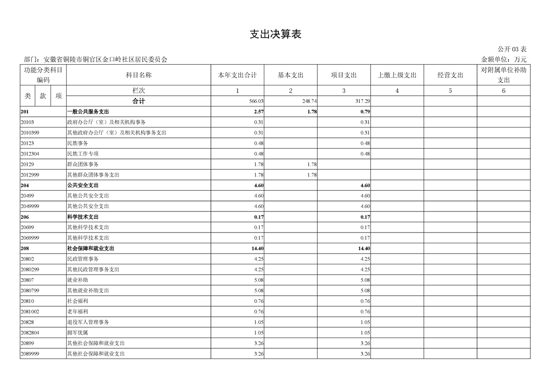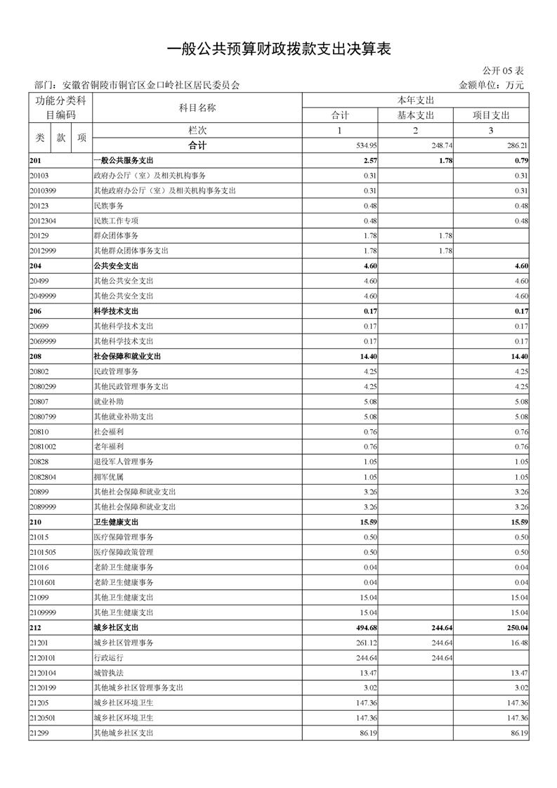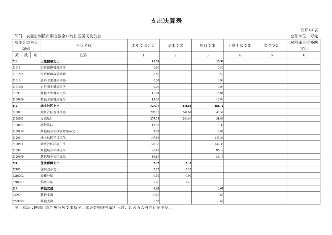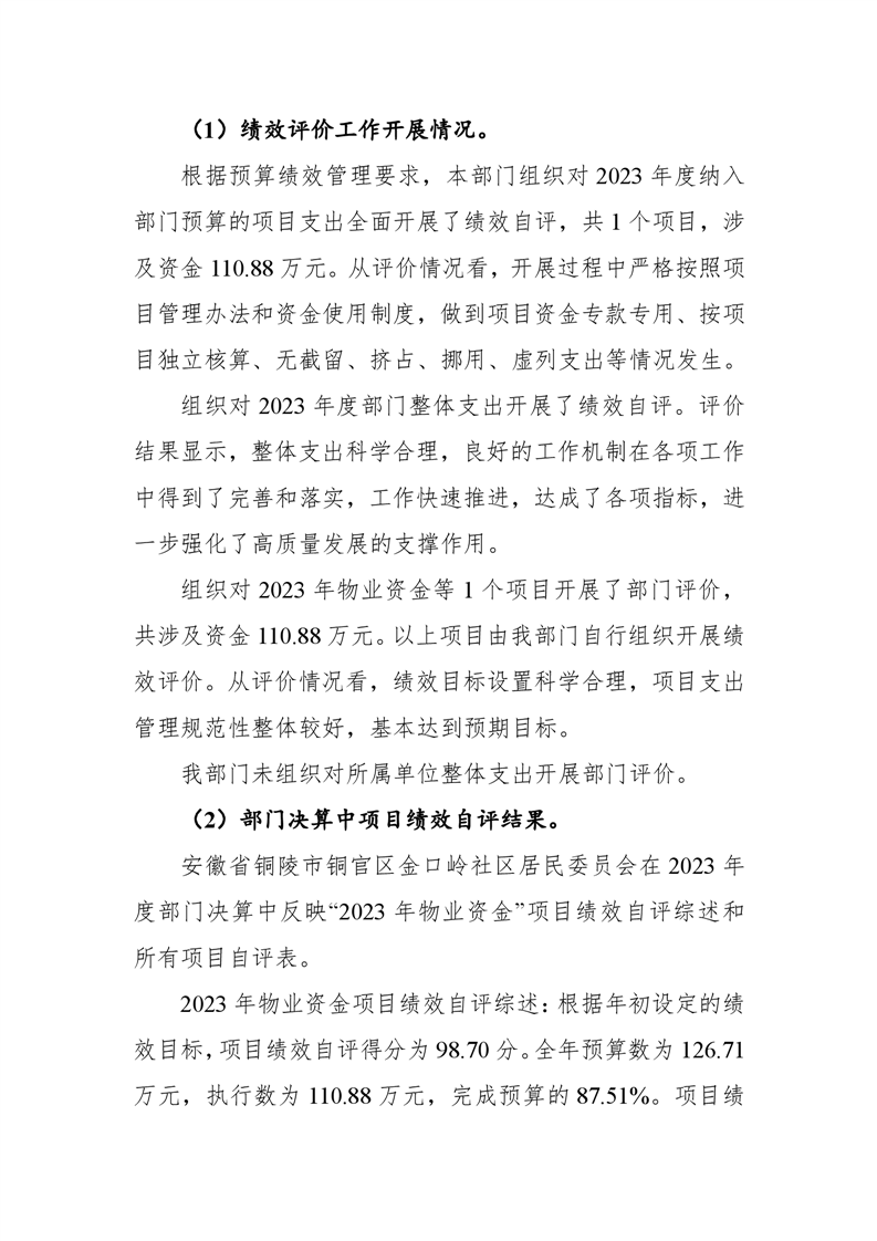 铜官区金口岭社区2023年度部门决算 |