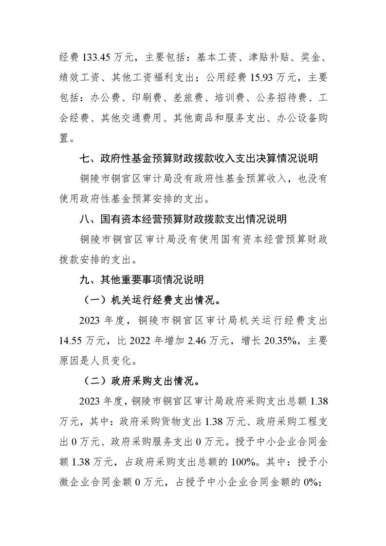 铜官区审计局 2023 年度部门决算-铜官区人民政府