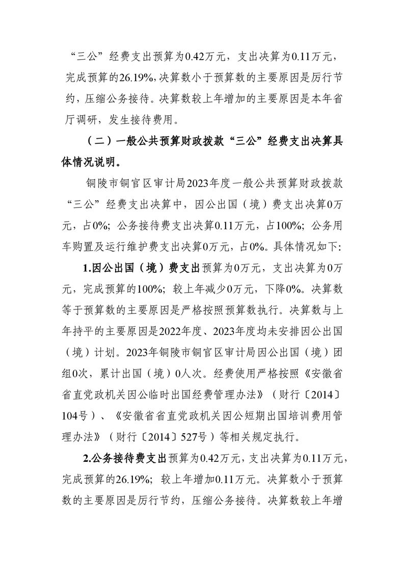 铜官区审计局2023年度一般公共预算财政拨款“三公”经费支出决算-铜官区人民政府