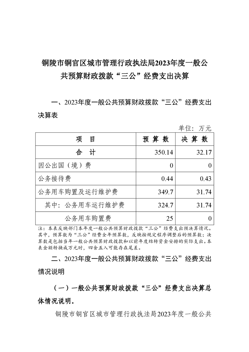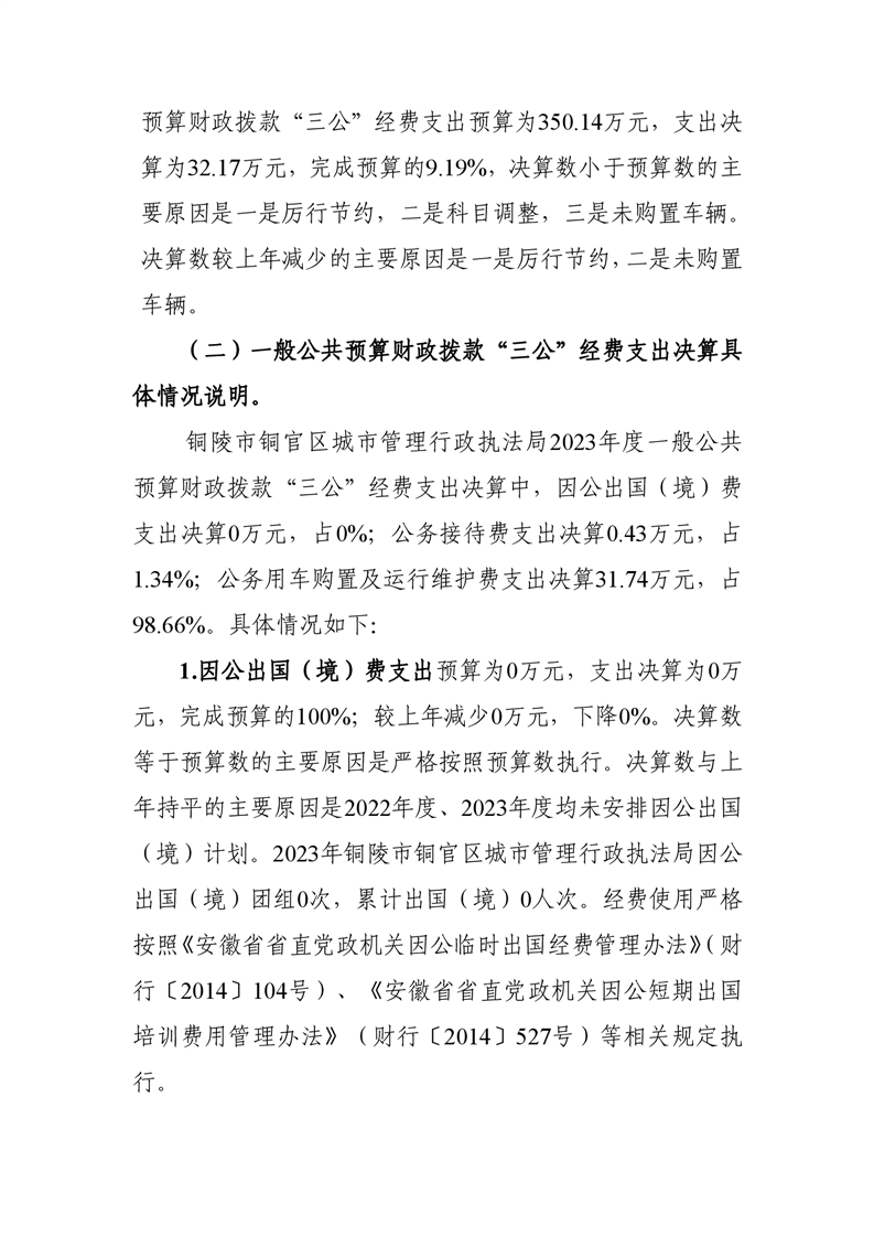 铜官区执法局2023年度一般公共预算财政拨款“三公”经费支出决算-铜官区人民政府