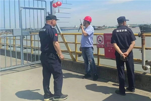 图为区禁捕办对长江铜官段水域开展巡护检查、禁捕法律法规宣传工作。