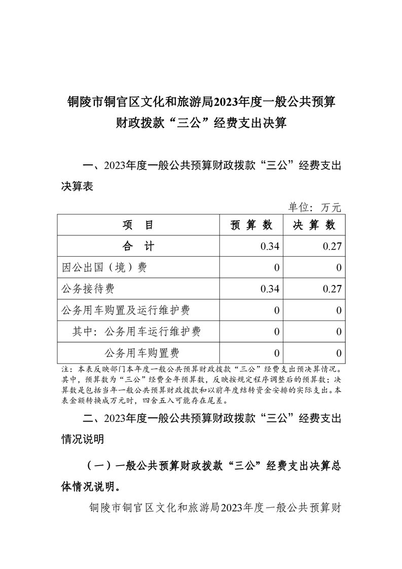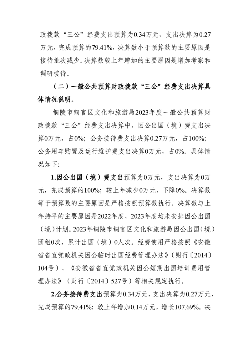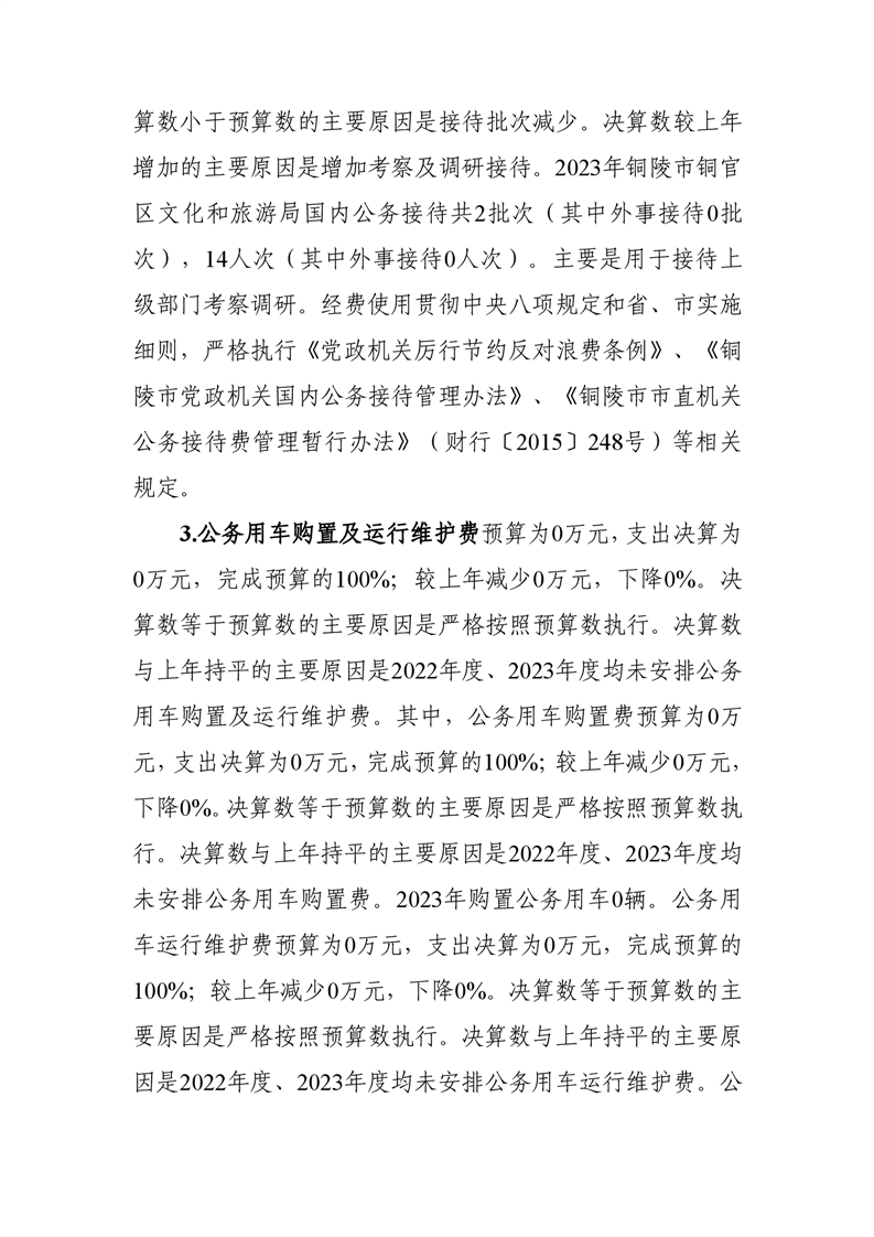 铜陵市铜官区文化和旅游局-2023年三公经费决算-铜官区人民政府