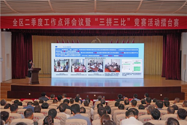 会前,“三拼三比”竞赛活动中,狮子山高新区、西湖镇、东郊办、新城办分别围绕招商引资、重点项目固定资产投资、高企认定推荐等登台展示;17个区直管社区分别围绕为企服务、民生工程、信访工作等晒成绩、比干劲、找差距,激发了干事创业活力,营造了比学赶超的浓厚氛围。