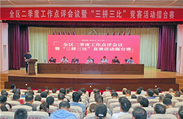 8月5日下午,我区开展二季度工作点评会暨“三拼三比”竞赛活动擂台赛,逐一分析落后指标、细化实化争先举措,以超常规状态奋战三季度,坚决实现全年目标任务。区委书记王书春出席会议并讲话。区委副书记、区长陈洁点评全区上半年经济社会发展情况。区领导汪世应、叶叶、李梅生、杨治、刘文俊等参加会议。区委常委、组织部部长石之甫主持会议。