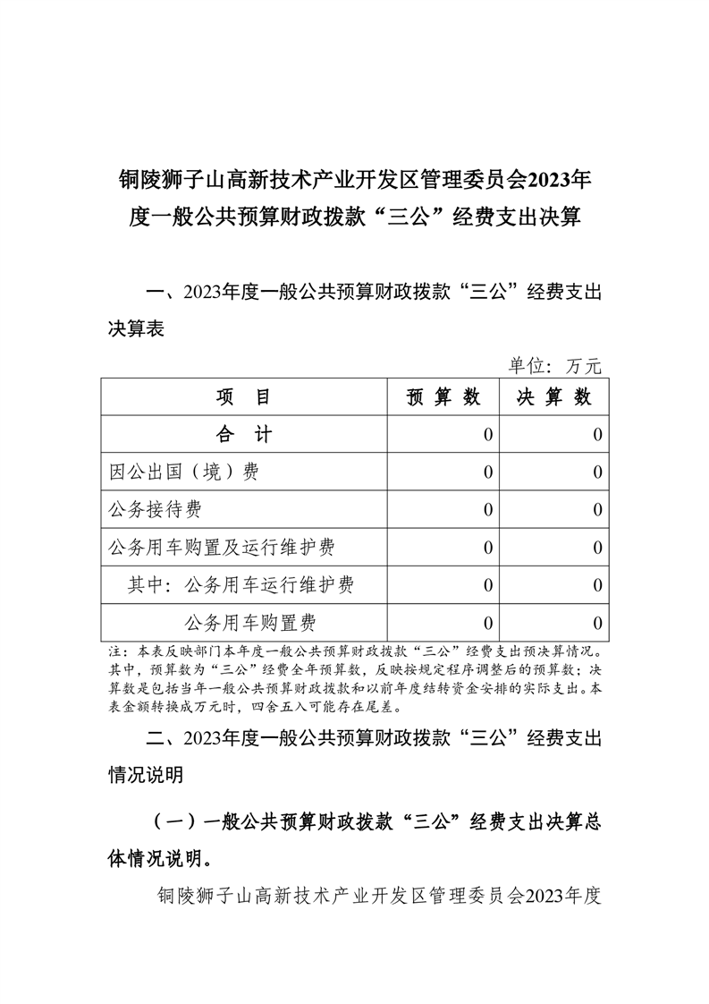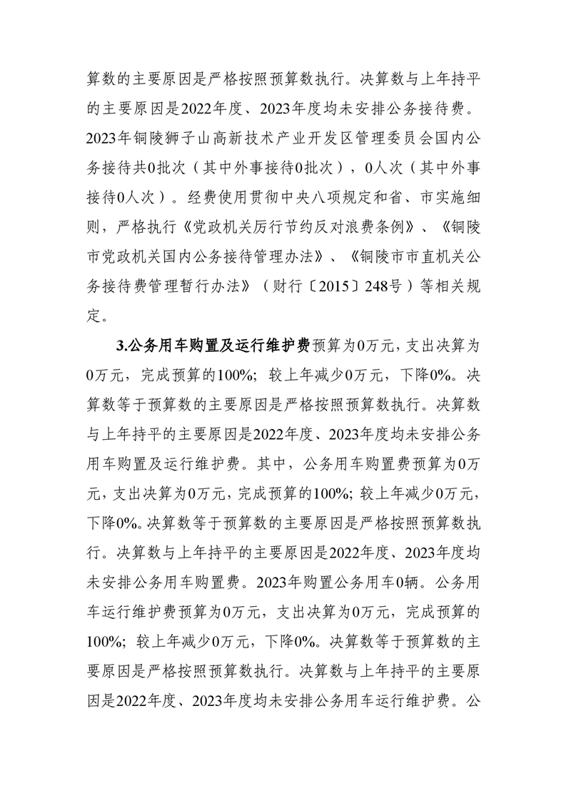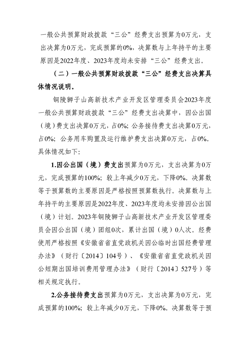 铜陵狮子山高新技术产业开发区管理委员会2023年度一般公共预算财政拨款“三公”经费支出决算-铜官区人民政府