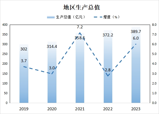 全年全区实现地区生产总值389.7亿元,同比增长6.0%,三次产业结构比为0.1:34.1:65.8。一产增加值0.7亿元,同比增长4.9%;二产增加值132.8亿元,同比增长3.2%;三产增加值256.3亿元,同比增长7.4%。