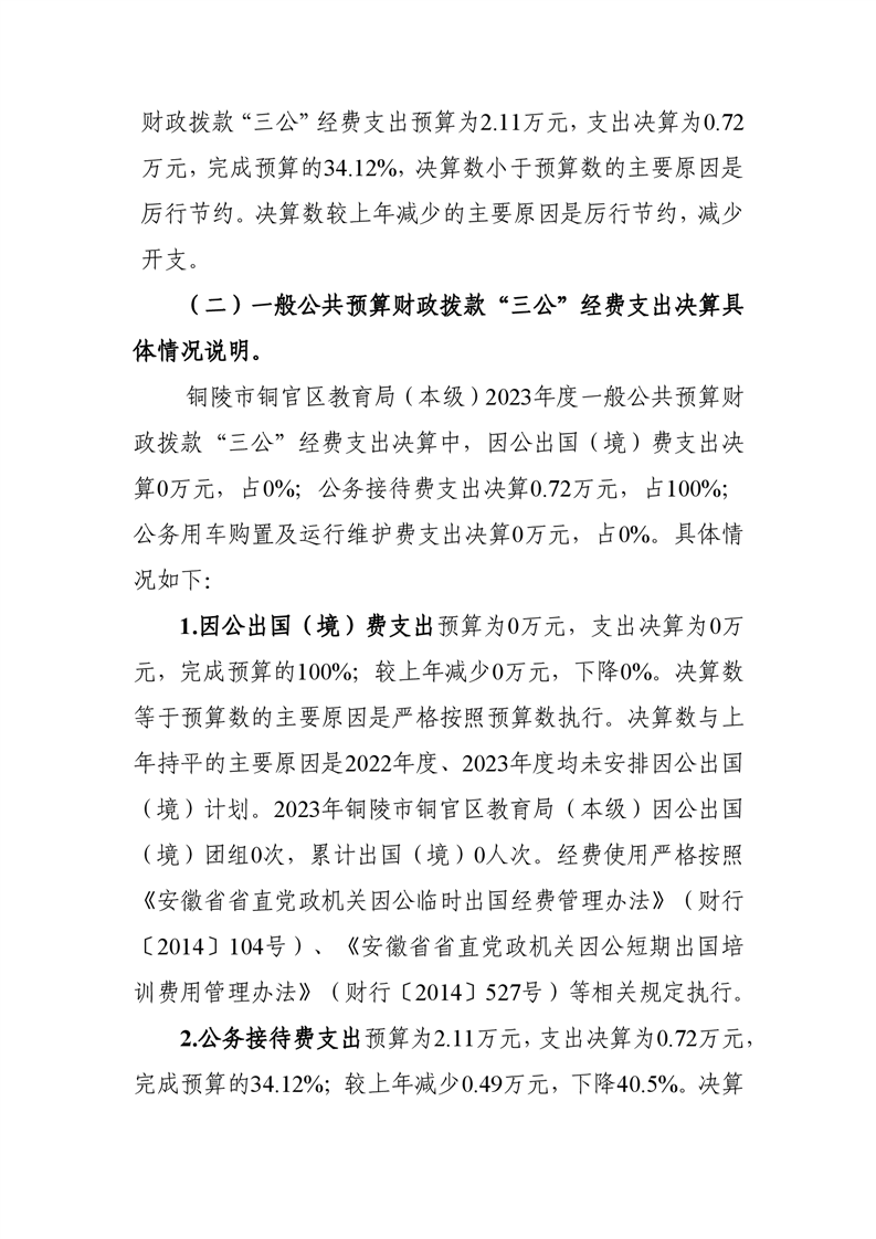 铜陵市铜官区教育局(本级)2023年三公经费决算-铜官区人民政府
