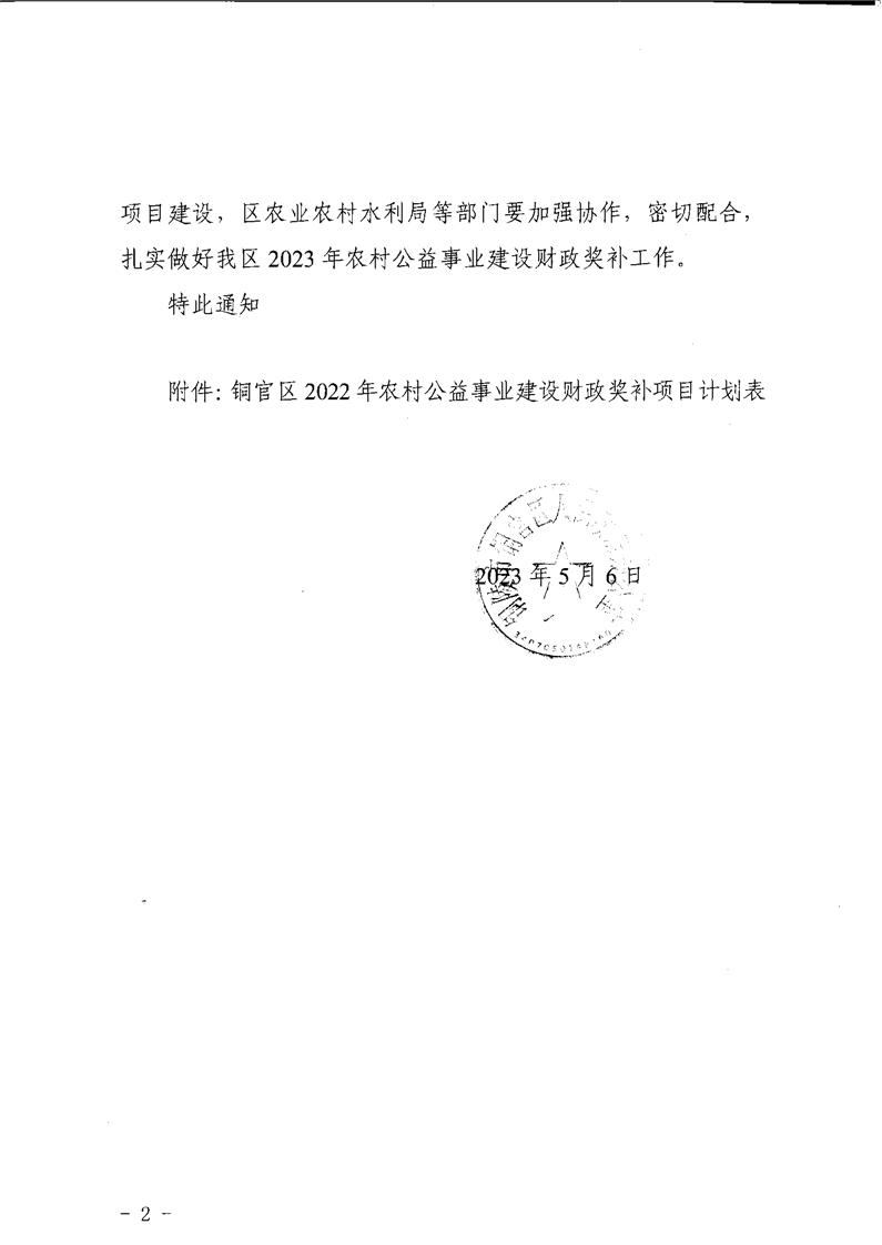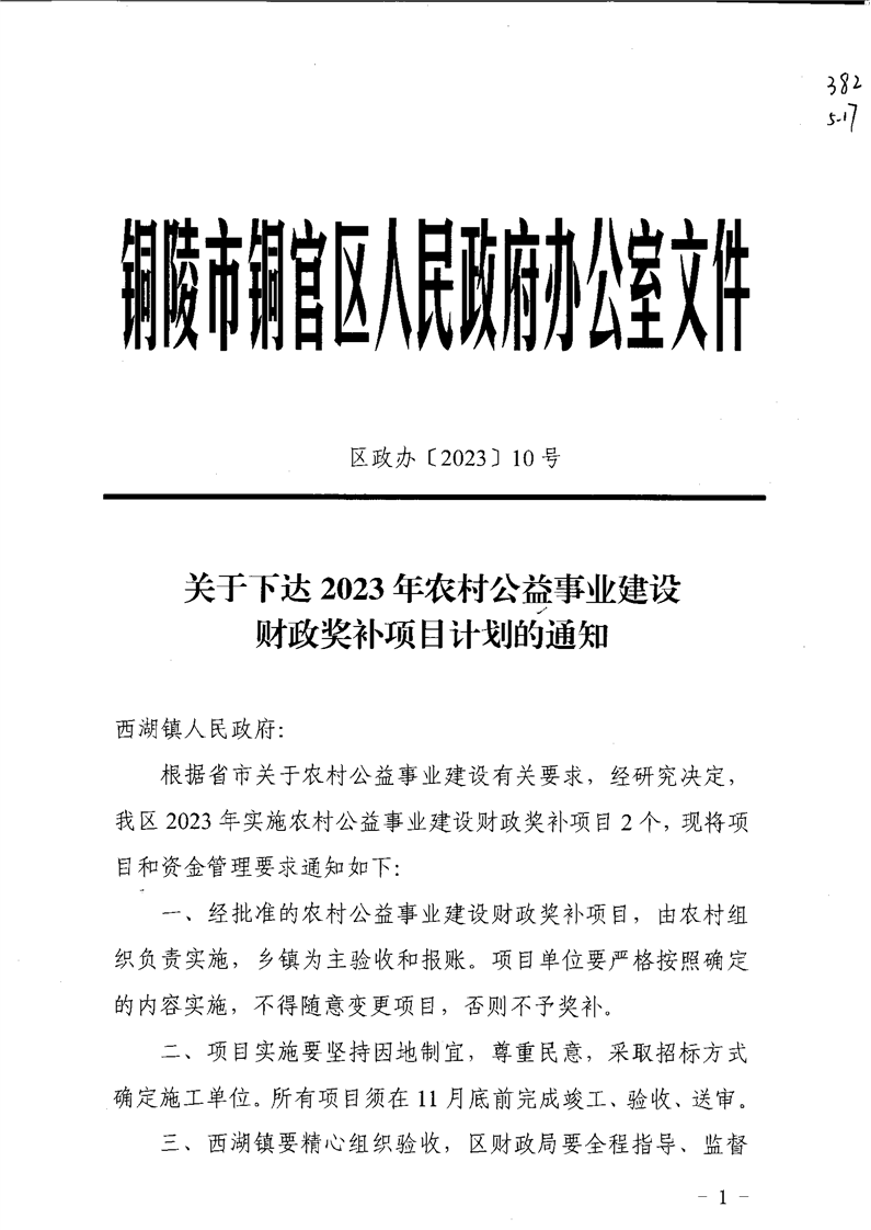 关于下达2023年村级公益事业建设财政奖补项目计划的通知-铜官区人民政府