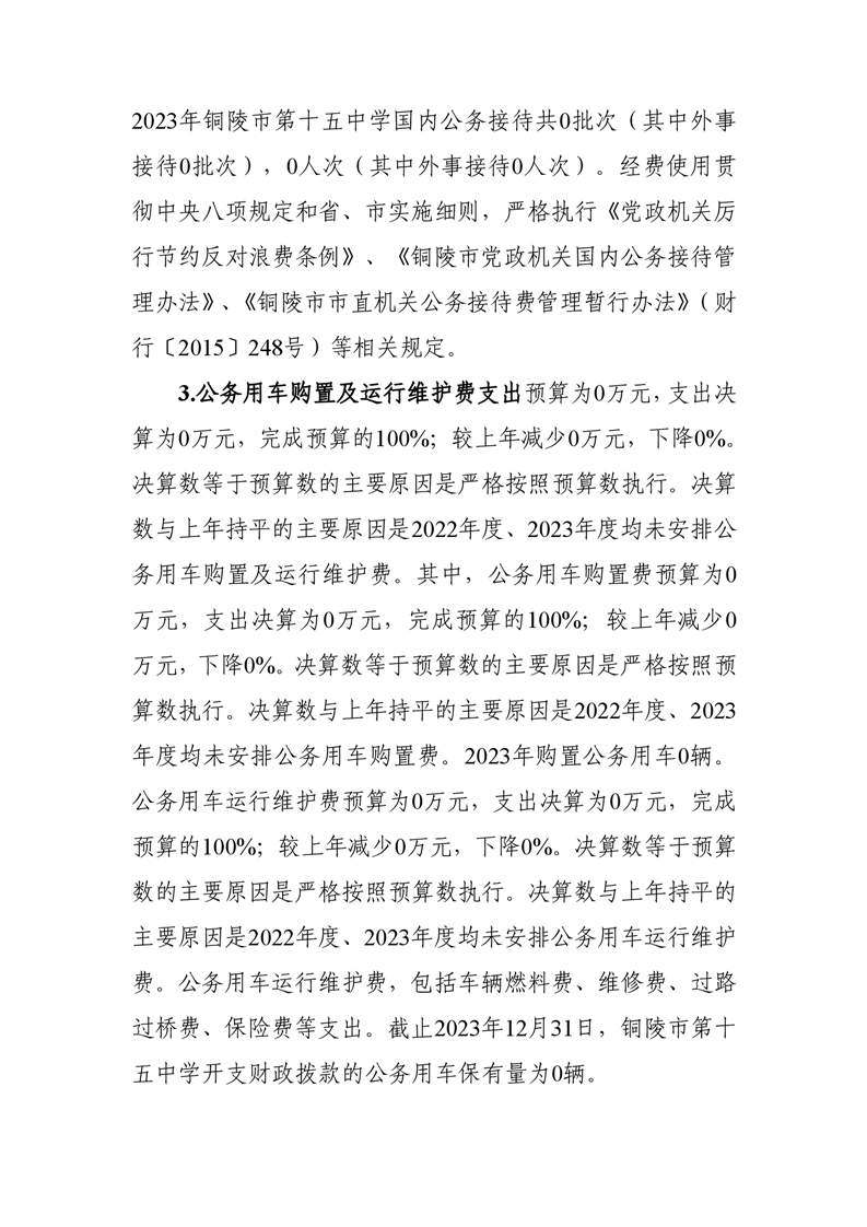 铜陵市第十五中学2023年三公经费决算-铜官区人民政府
