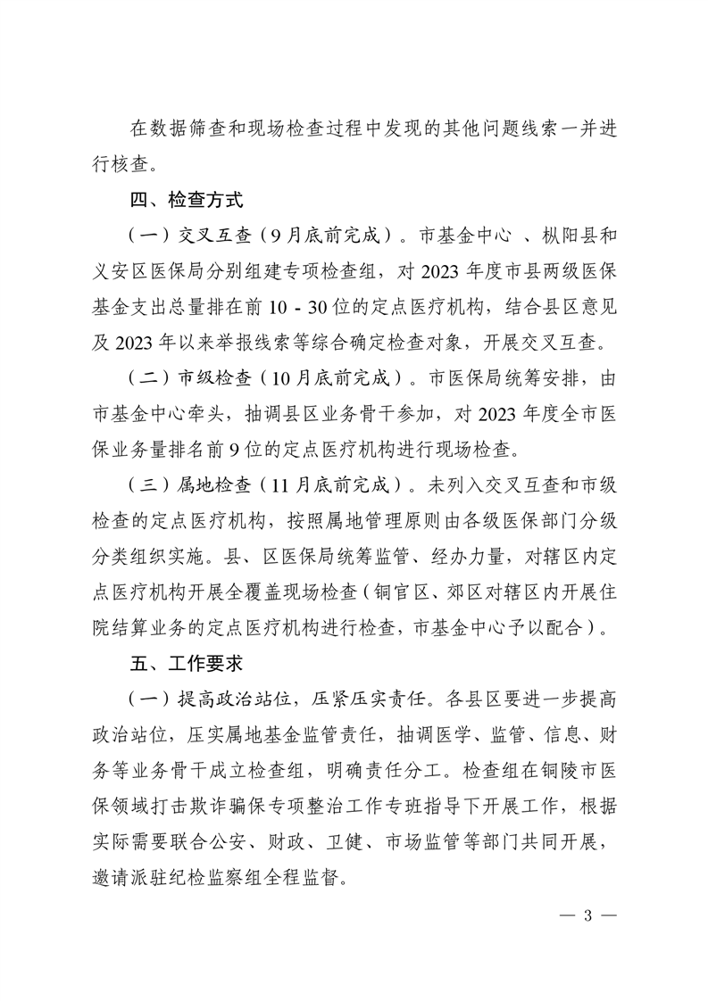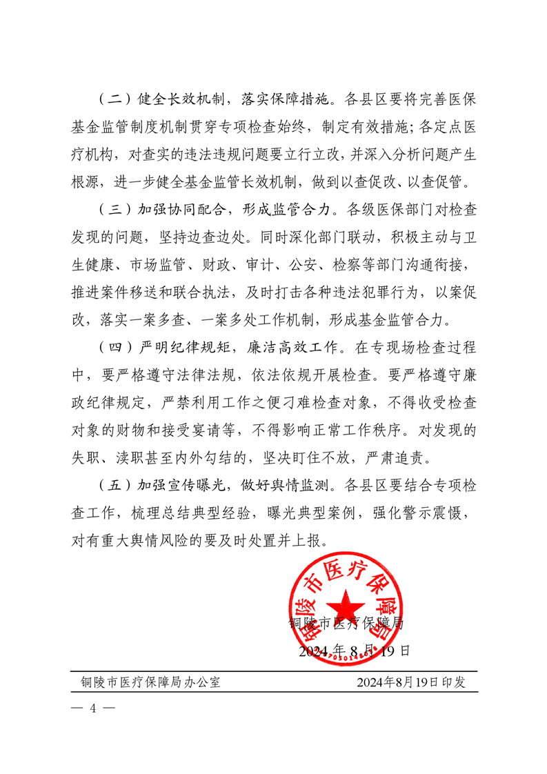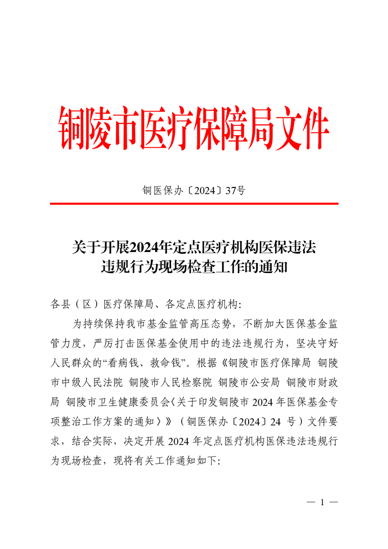 关于开展2024年定点医疗机构医保违法违规行为现场检查工作的通知-铜官区人民政府
