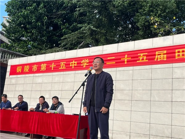 十五中党总支书记王东升宣布第25届秋季运动会正式开幕。