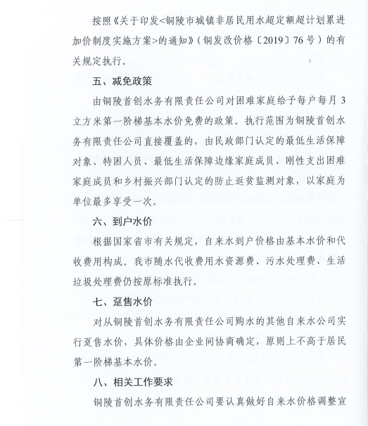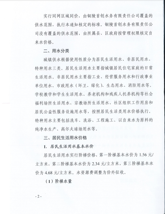 铜陵市发展和改革委员会关于调整铜陵市自来水价格的通知-铜官区人民政府