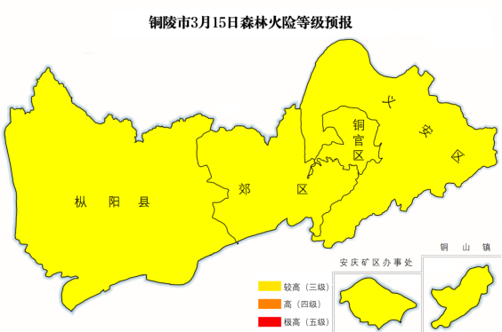 根据省森林火险气象等级预报:3月15日,铜陵市全市森林火险等级3级(黄色预警)。