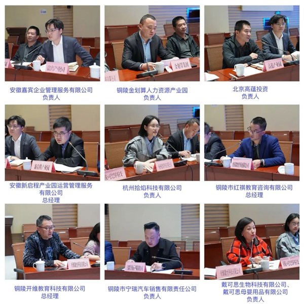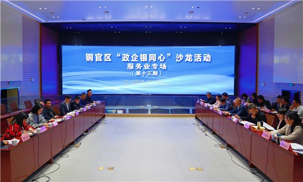 11月8日下午,第十三期“政企银同心”沙龙——推动服务业高质量发展专场活动在区智慧铜官运营管理中心举办。区委书记王书春主持活动并讲话。区领导石之甫、汪志祥、任熙儒、叶翔,安徽嘉宾企业管理服务公司、铜陵金划算人力资源产业园、北京高蕴投资公司、安徽新启程产业园、杭州拾焰科技公司、铜陵红祺教育咨询公司、铜陵开维教育科技公司、铜陵宁瑞汽车销售公司、安徽戴可思生物科技公司负责人,相关区直部门和部分金融机构负责人参加。