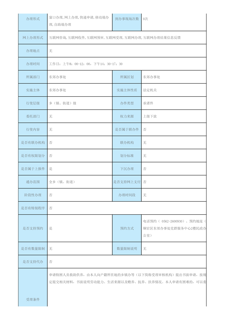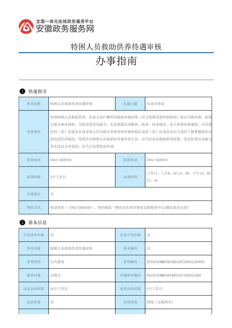 特困人员供养办事指南2024-铜官区人民政府