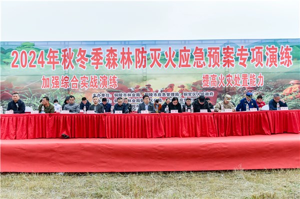 为进一步加强森林防灭火队伍的建设,全面提升森林火灾预防和防灭火技能,12月3日上午,由市林业局、市应急管理局和区政府共同主办,市林业局铜官分局、区应急管理局承办的2024年秋冬季森林防灭火应急预案专项演练在铜陵有色天马山黄金矿业公司举办,区委常委、政法委书记、副区长朱军出席并讲话,市林业局党组成员、总规划师王英,市应急管理局四级调研员刘翔和市区有关单位负责同志出席。