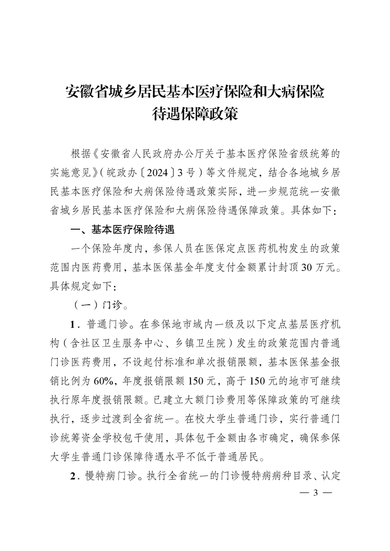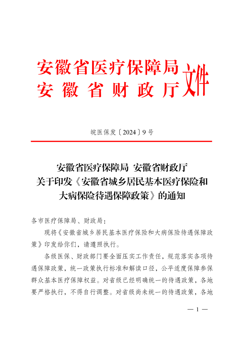 《安徽省城乡居民基本医疗保险和大病保险待遇保障政策》的通知