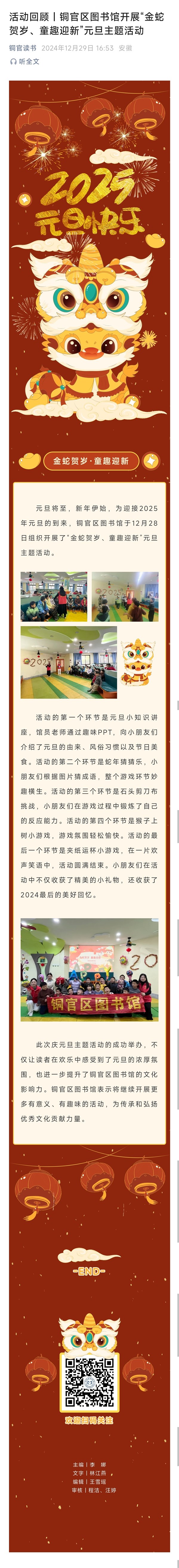 铜官区图书馆开展“金蛇贺岁、童趣迎新”元旦主题活动-铜官区人民政府