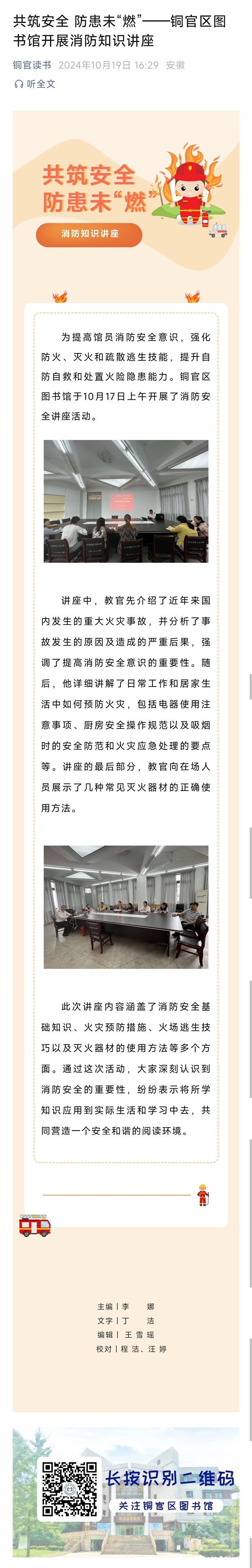 共筑安全 防患未“燃”——铜官区图书馆开展消防知识讲座-铜官区人民政府