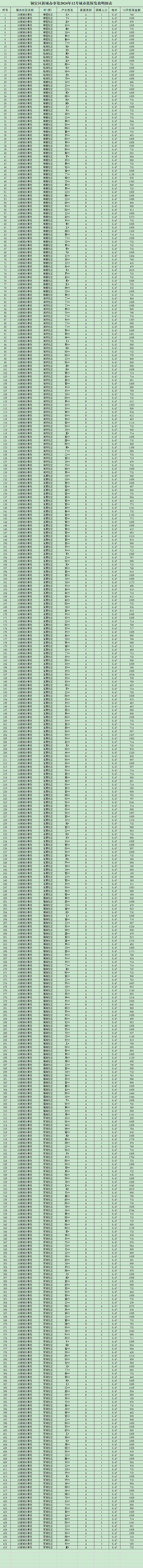 铜官区新城办事处2024年12月城市低保发放明细表-铜官区人民政府